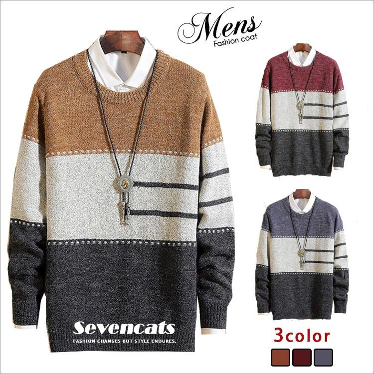 ニットセーター メンズ セーター トップス 色切替 セーター 丸首 ニット シンプル カジュアル 保温 防寒着 3色 送料無料 Sc Bm058 Seven Cats 通販 Yahoo ショッピング